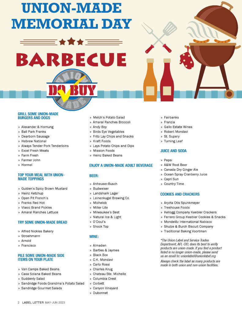 *The Union Label and Service Trades Department, AFL-CIO, does its best to verify products are union-made. If you find a product listed is no longer union-made, please send us an email to: unionlabel@unionlabel.org