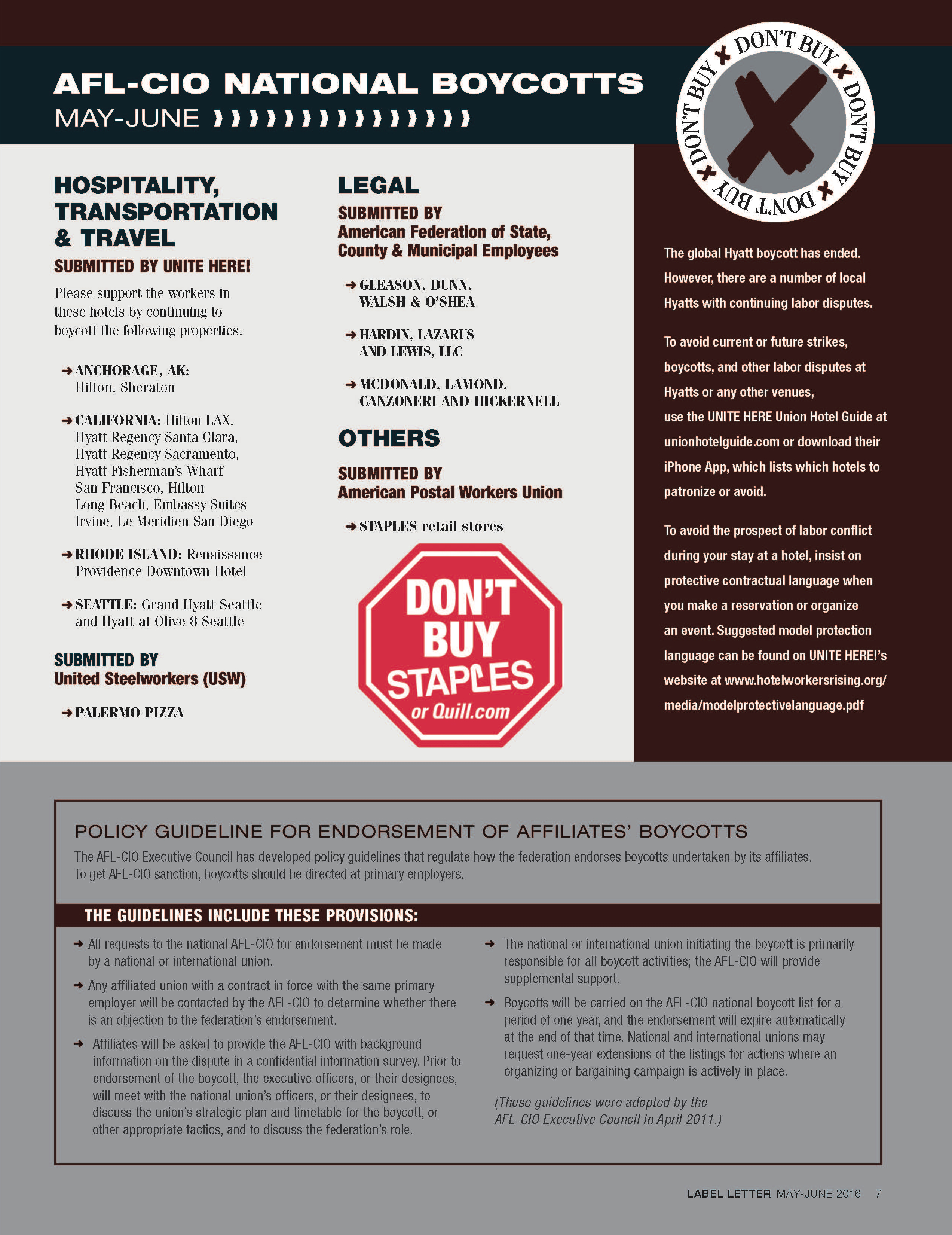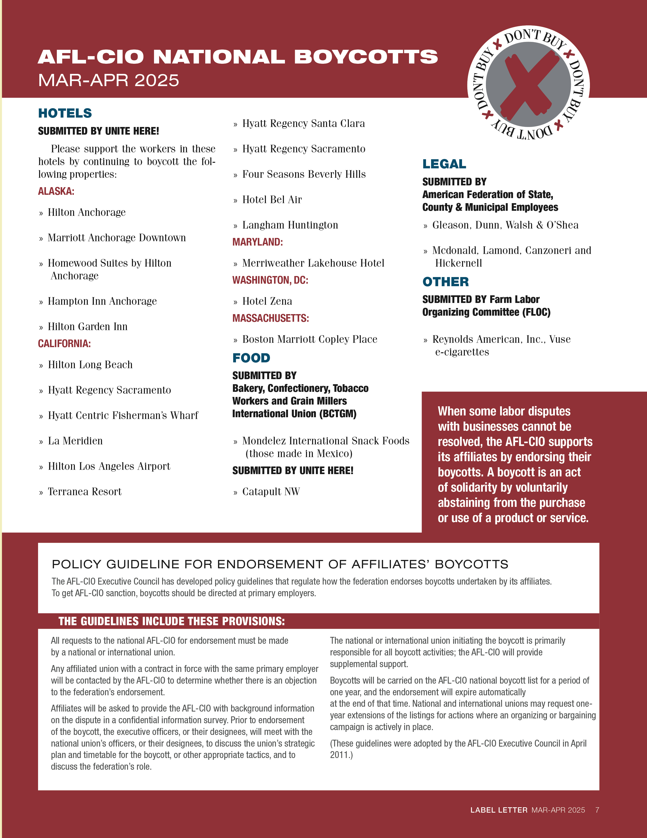 The AFL-CIO Has Approved Boycotts of the Following Companies