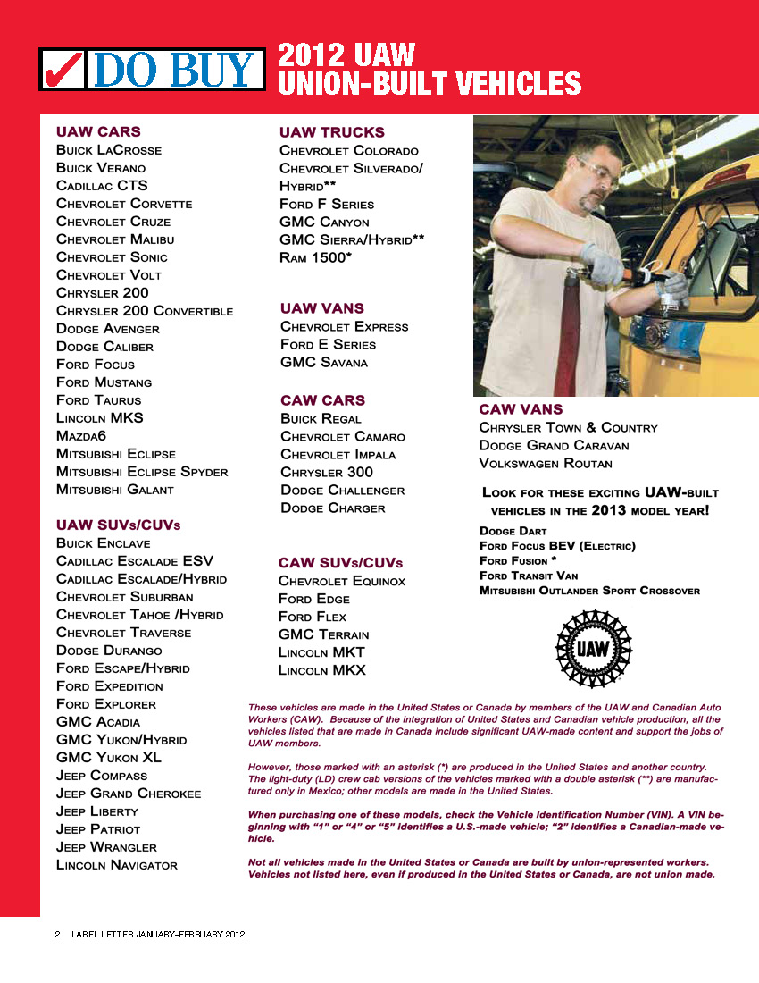 2012 UAW Made Vehicle List